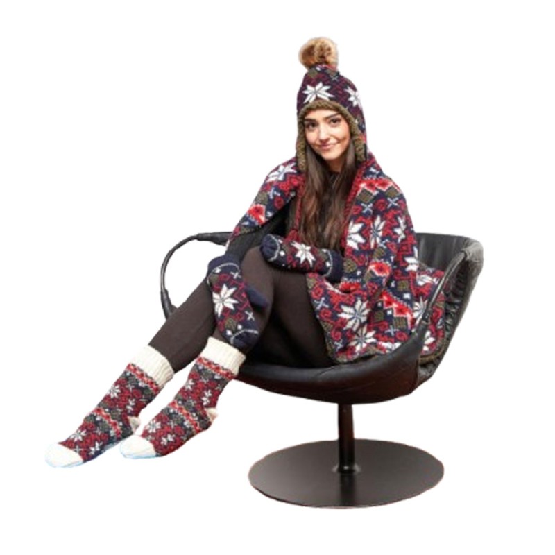 2 colori, set composto da plaid stampato agnellato 130x160cm, calza lunga antiscivolo e guanti/cappello, bel prodotto da Easy home