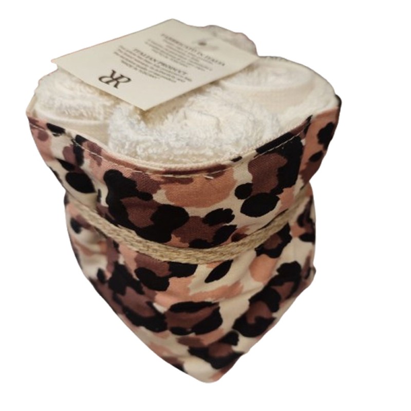 Confezione 4 pezzi 30 x 30 cm modello Maculato da RR, 100% cotone, bella presentazione contenitore in tessuto, Made in Italy.