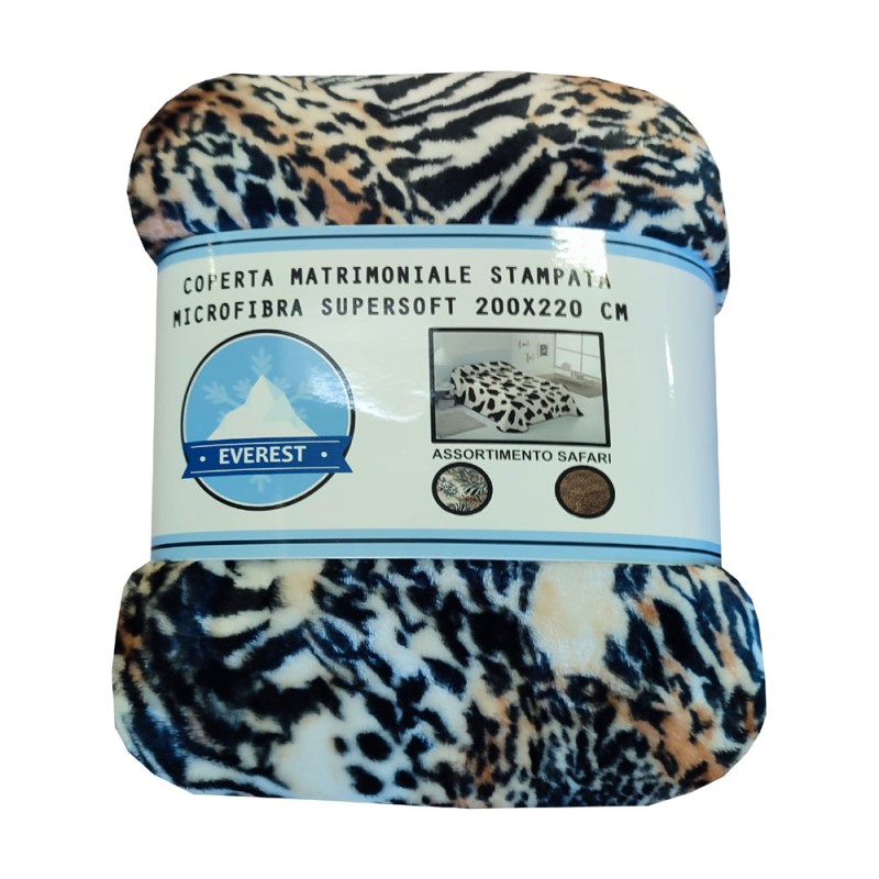 - Coperta pile 200x220cm stampato Everest Safari leopardato