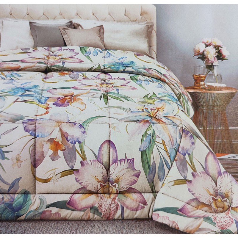 Trapunta invernale Eva 3 da GF Ferrari, azienda italiana di biancheria per la casa. Per letto matrimoniale 265x265cm, in raso di cotone 300 fili e stampa digitale, imbottitura in poliestere 300gr anallergico. La sua composizione in puro cotone garantisce confort e morbidezza, ottima qualità italiana.