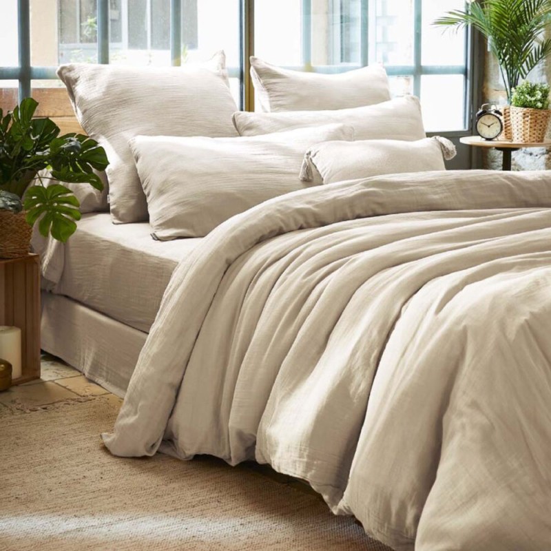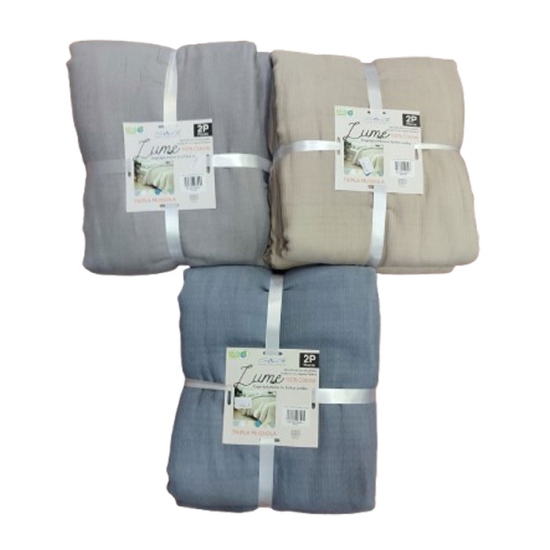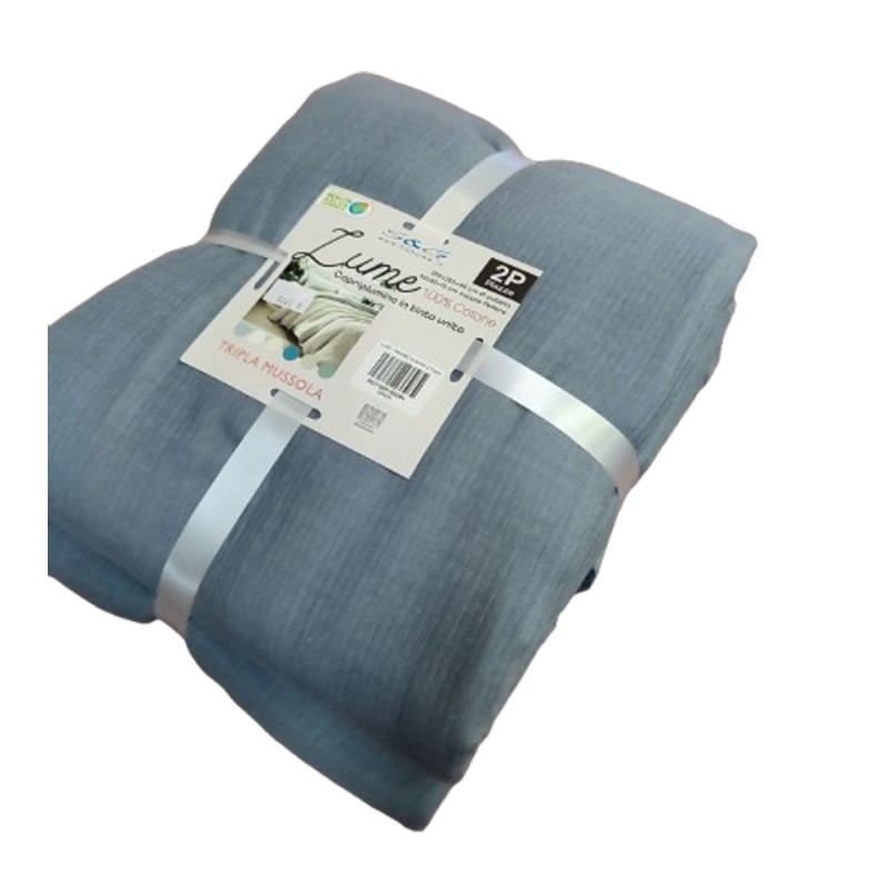 COPRIPIUMINO MATRIMONIALE COTONE TINTA UNITA TRIPLA MUSSOLA LUME SGHOME