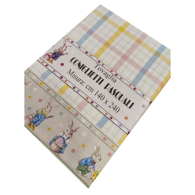 Vari prodotti stessa linea Coniglietti pasquali, tovaglie, presine, strofinacci, americana, cestino, grembiule e altro, 100% cotone tinto in filo con bordo stampato, linea molto molto carina con ottimi prezzi