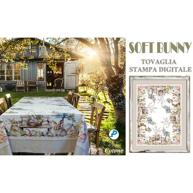 Tovaglia stampa digitale Soft Bunny da Pezzoli, ottima azienda di biancheria per la casa. Tessuto 100% cotone, stampa digitale a alta risoluzione, 2 misure da 6 e da 12, un prodotto molto bello e di qualità a un ottimo prezzo.