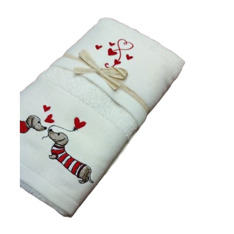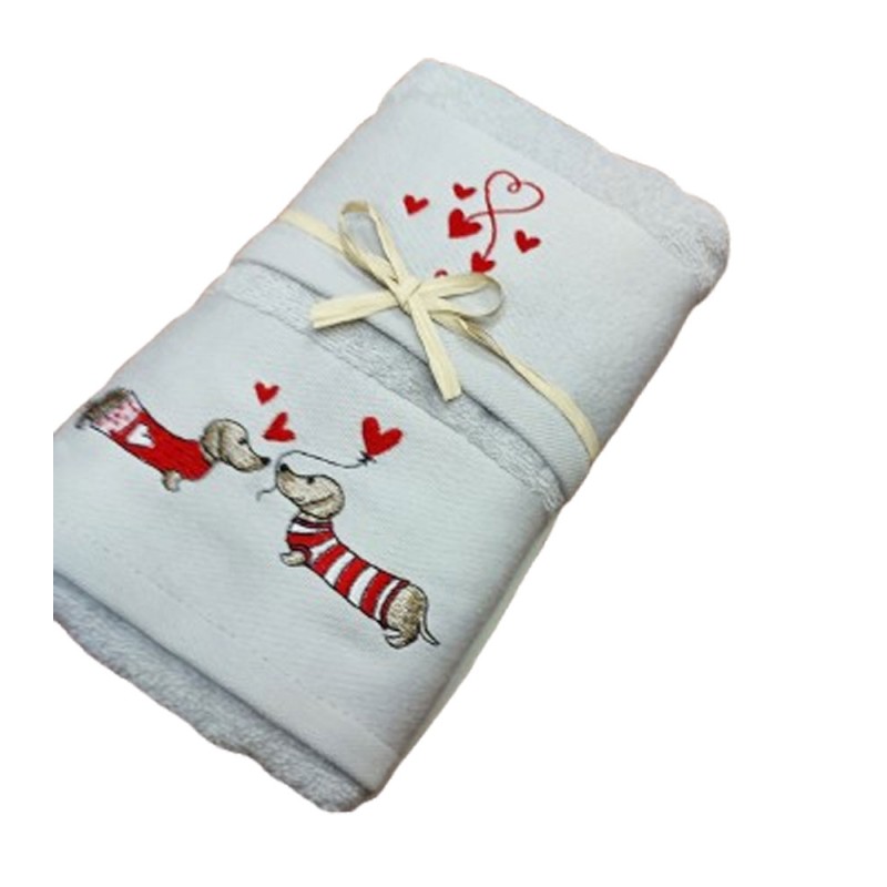 Set spugna ricamato asciugamano + ospite San Valentino Bassotto da Pezzoli, ottima qualità made in Turchia.