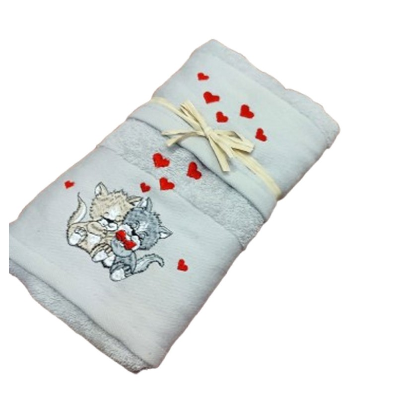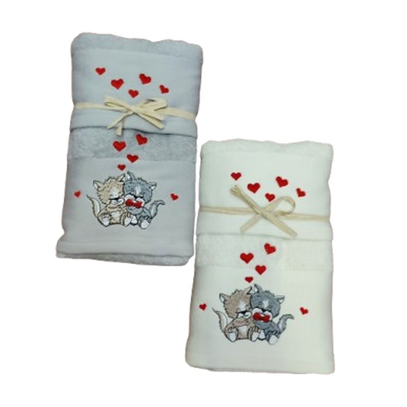 Set spugna ricamato asciugamano + ospite San Valentino Gattini da Pezzoli, ottima qualità made in Turchia.