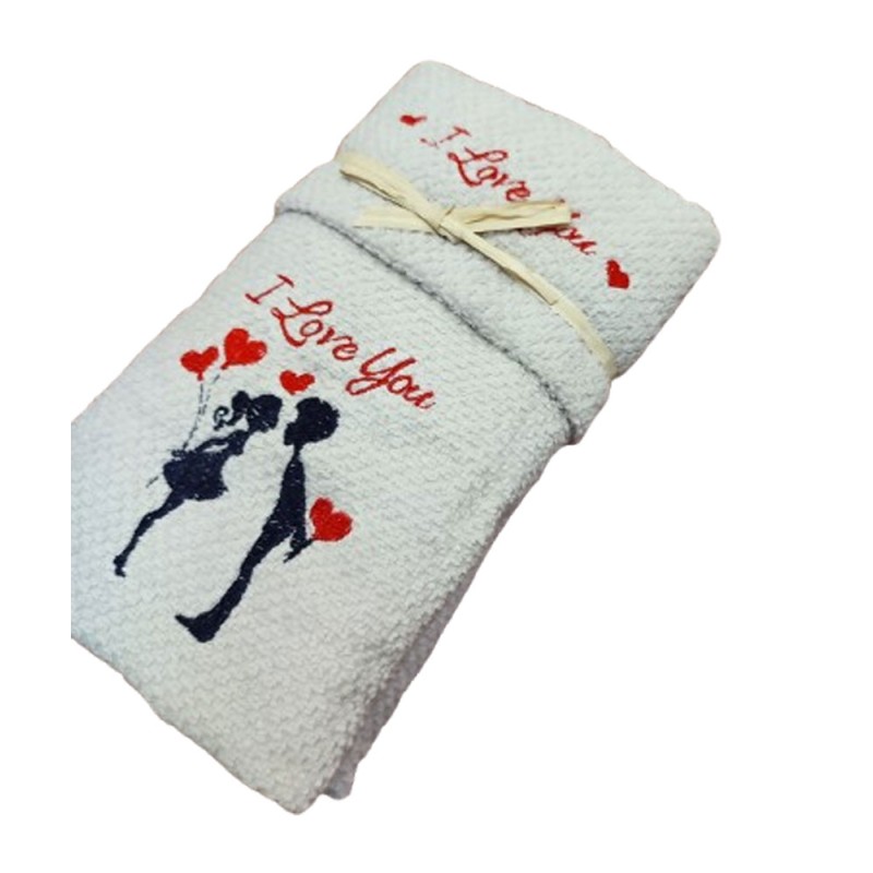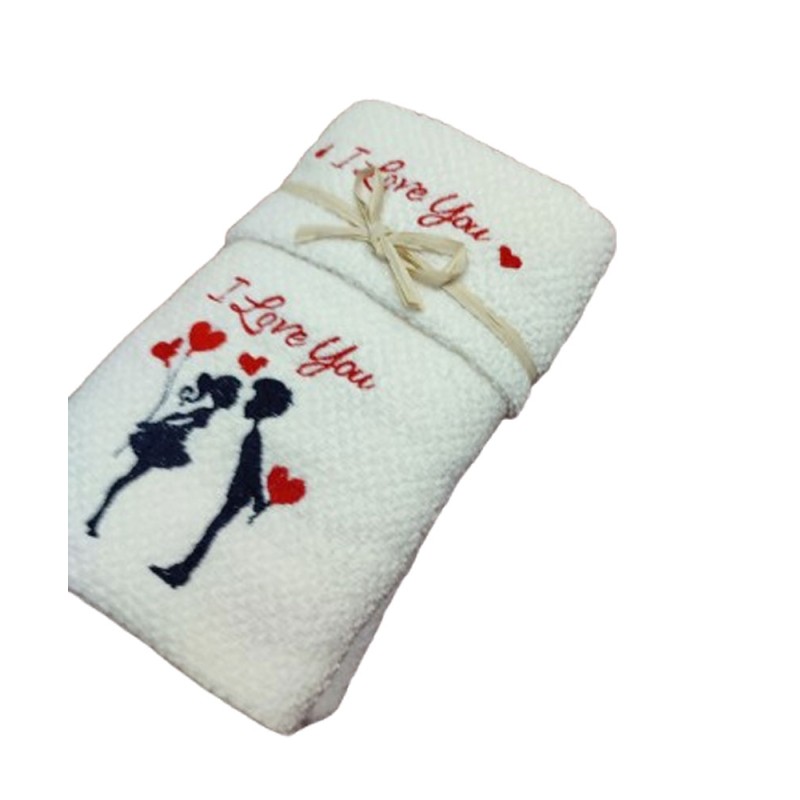 Set spugna pop corn ricamato asciugamano + ospite San Valentino Innamorati da Pezzoli, ottima qualità made in Turchia.