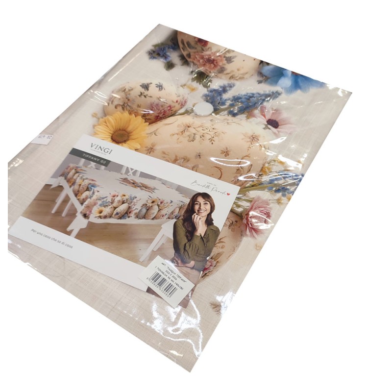 Tovaglia stampa digitale Pasqua Tiffany 2 da Vingi, ottima azienda di biancheria per la casa made in Italy. Tessuto 100% cotone, stampa digitale a alta risoluzione, 3 misure disponibili, un prodotto molto bello e di qualità.