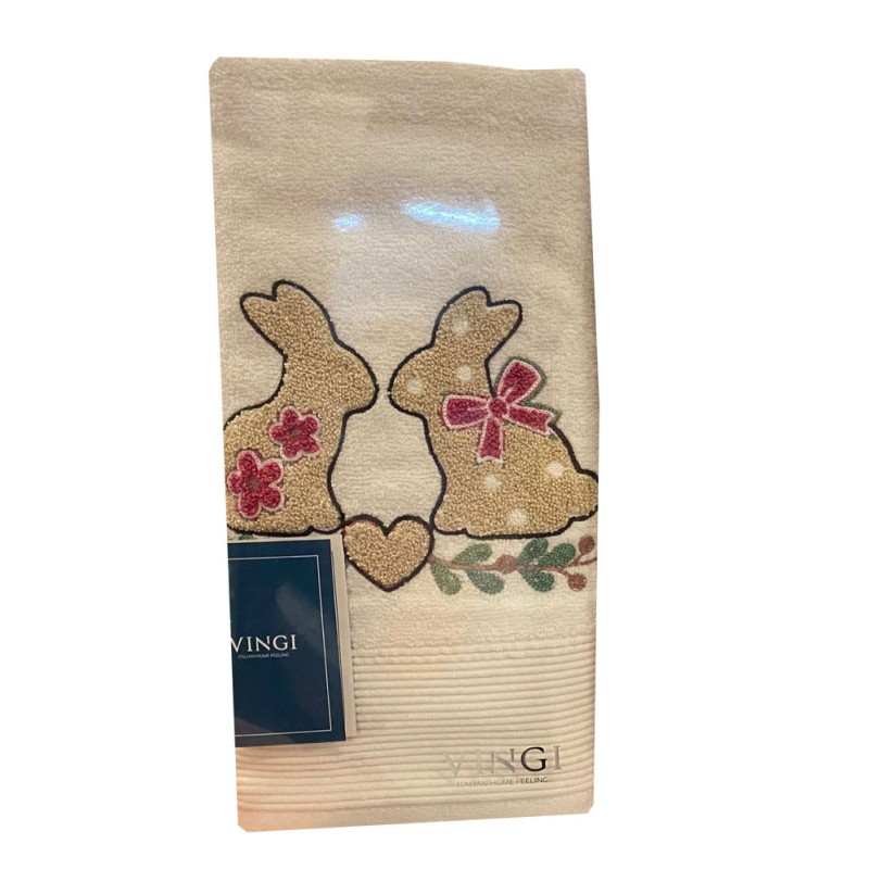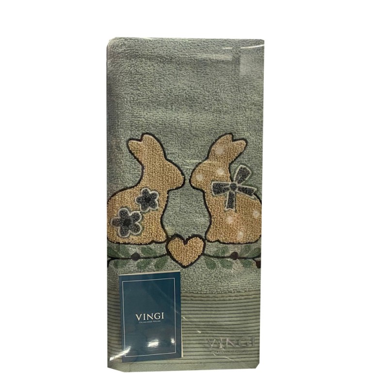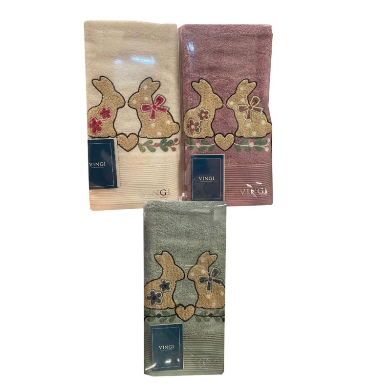 Speciale Pasqua, 3 colori, coppia asciugamano + ospite, ricamato, 100% cotone, classe e qualità italiana da Vingi