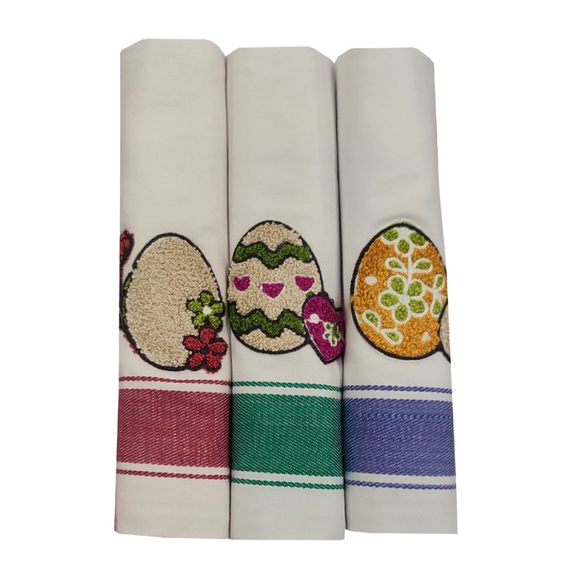 - Strofinacci cotone spigato ricamato 3 pezzi Spiga Pasqua Uovo
