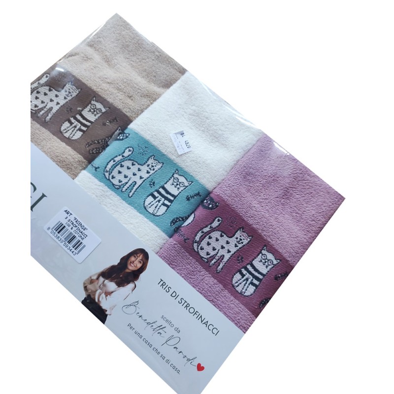 3 PEZZI STROFINACCI SPUGNA COTONE JACQUARD FRIENDS GATTI VINGI