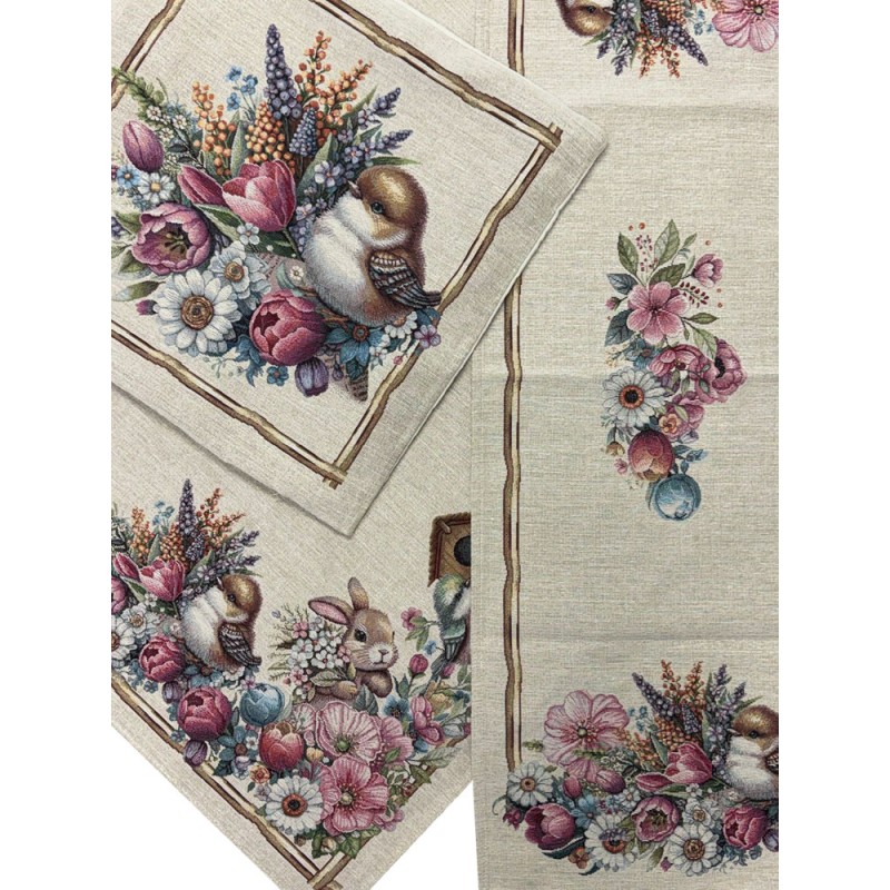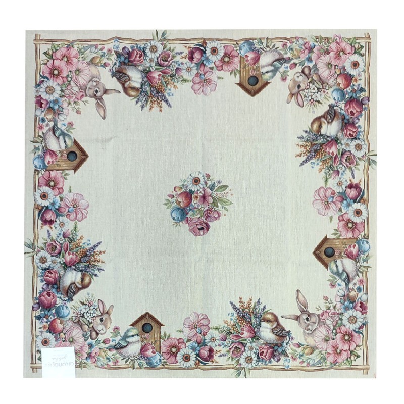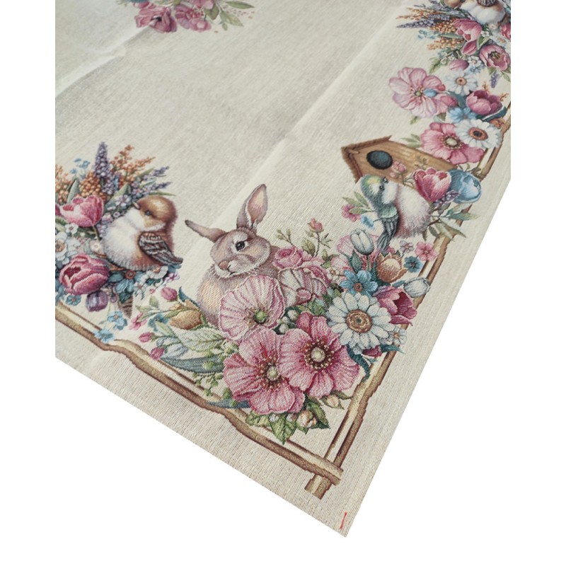 Centro tavola, runner e fodera arredo disegno Pasqua Conigli fiori tessuto Gobelin da TAA Tessitura di Arconate, ottima azienda di biancheria per la casa made in Italy. Tessuto 60% cotone 40% poliestere, lavorazione del tessuto Gobelin, prodotto molto bello e esclusivo con un ottimo rapporto qualità prezzo.