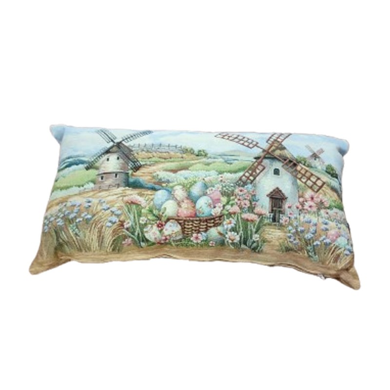 Centro tavola, runner e fodera arredo e cuscino rettangolare imbottito Gobelin disegno Pasqua 4 da Vingi, ottima azienda di biancheria per la casa made in Italy. Tessuto 60% cotone 40% poliestere, prodotto molto bello e esclusivo con un ottimo rapporto qualità prezzo.