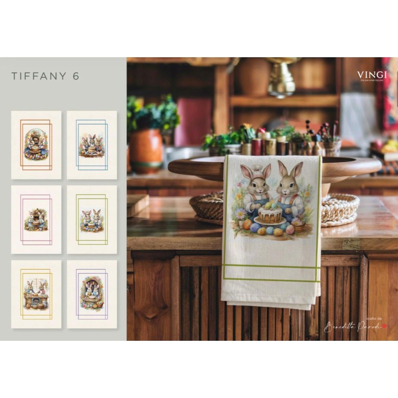 Strofinacci set 6 pezzi Pasqua Tiffany 6 da Vingi, ottima azienda di biancheria per la casa. Assortiti 1x disegno, 100% cotone, stampa digitale, belllissimo prodotto con un ottimo rapporto qualità prezzo.