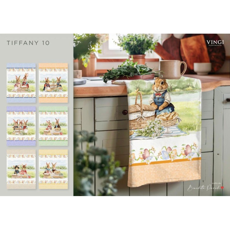 Strofinacci set 6 pezzi Pasqua Tiffany 10 da Vingi, ottima azienda di biancheria per la casa. Assortiti 1x disegno, 100% cotone, stampa digitale, belllissimo prodotto con un ottimo rapporto qualità prezzo.