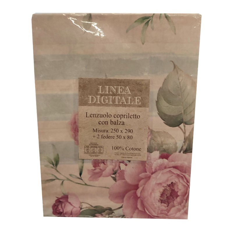 Lenzuolo copriletto 100% cotone stampe digitali anche nella balza, con due federe, bellissimo prodotto con un ottimo prezzo di vendita