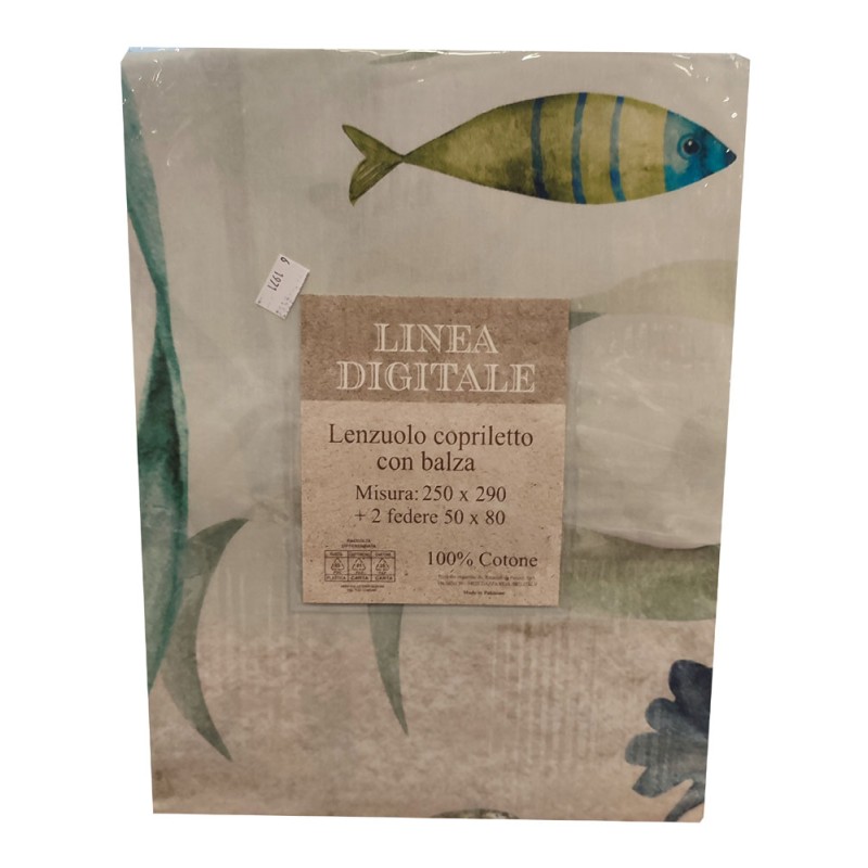 LENZUOLO COPRILETTO MATRIMONIALE DIGITALE PESCI MULTICOLOR PEZZOLI