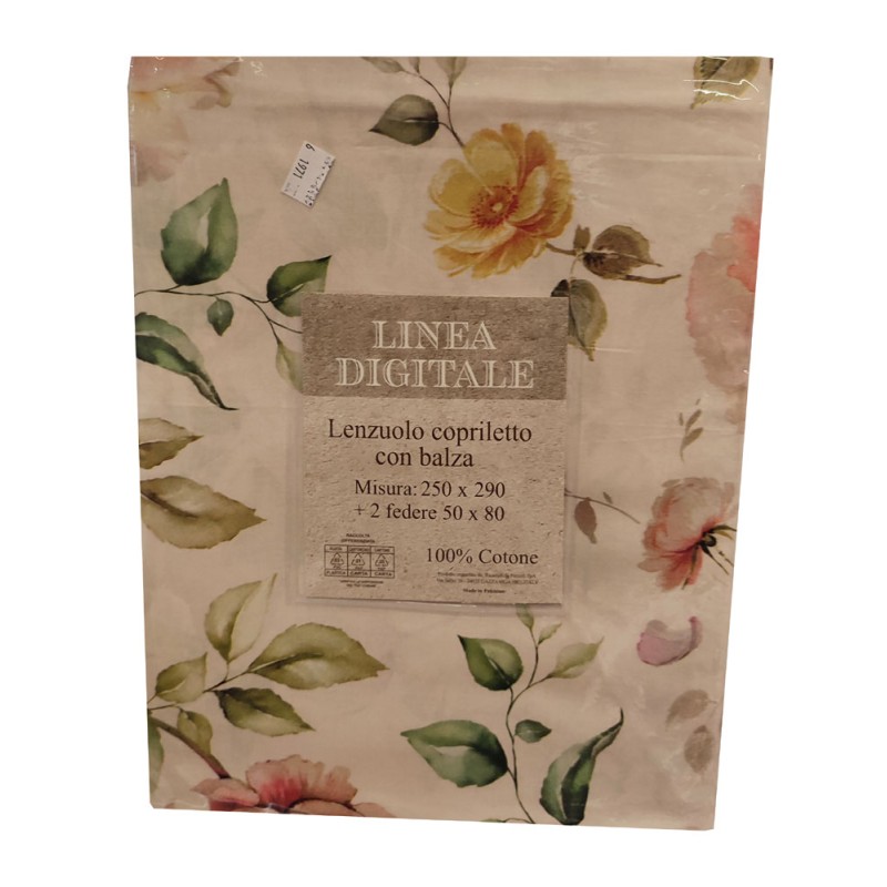 Lenzuolo copriletto 100% cotone stampe digitali anche nella balza, con due federe, bellissimo prodotto con un ottimo prezzo di vendita