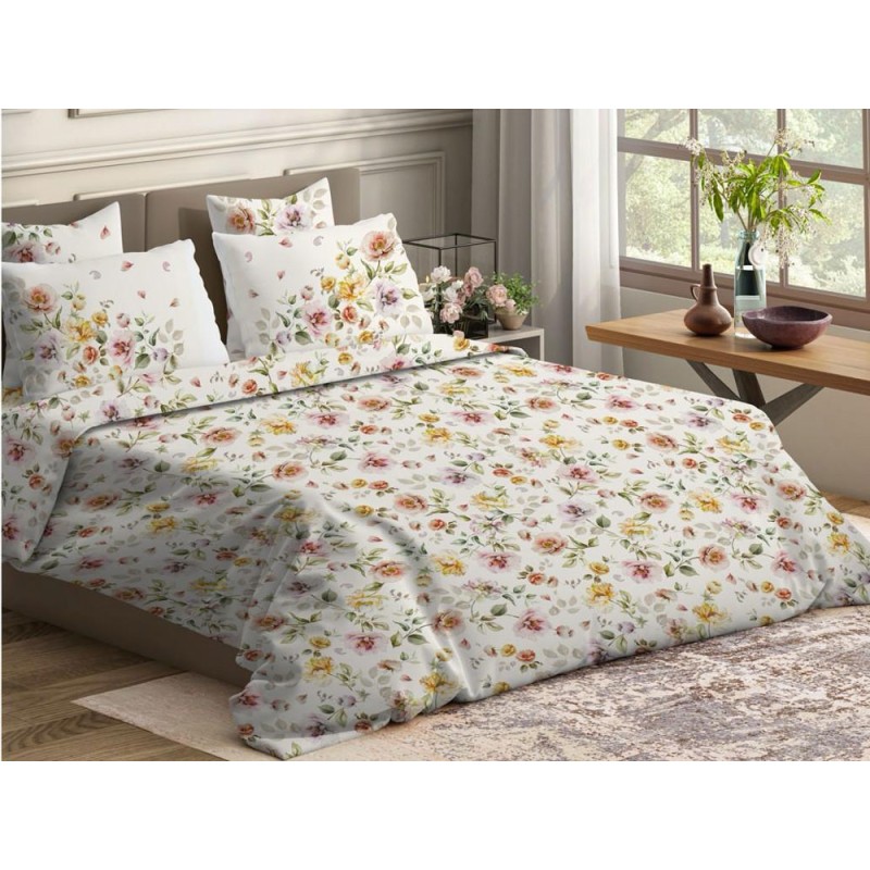 Lenzuolo copriletto disegno Roselline multicolor da Pezzoli, ottima azienda di biancheria per la casa. 100% cotone, stampe digitali a alta risoluzione, composto dal lenzuolo sopra due federe cuscino. La stampa è anche sulla balza del lenzuolo sopra in modo da poterlo usare come copriletto nei mesi estivi più caldi.