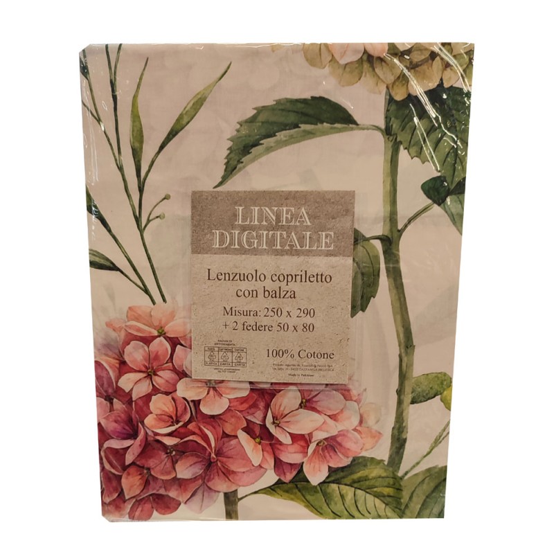 Lenzuolo copriletto 100% cotone stampe digitali anche nella balza, con due federe, bellissimo prodotto con un ottimo prezzo di vendita