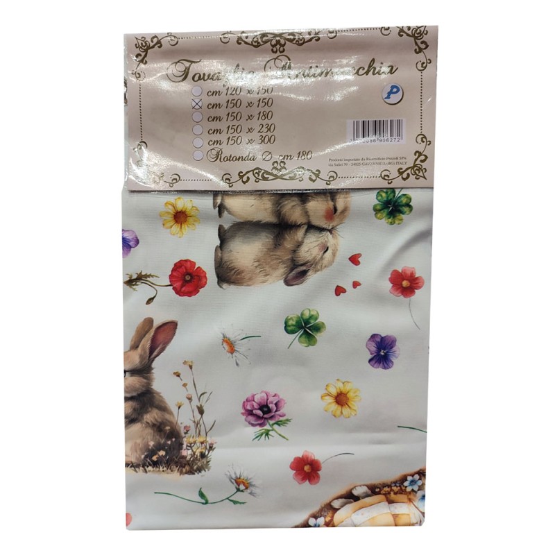 Tovaglia antimacchia disegno Pasqua Conigli fiorellini da Pezzoli, ottima azienda di biancheria per la casa. Tessuto 100% poliestere, si pulisce facilmente con una spugnetta, stampe molto belle, varie misure disponibili, un prodotto vincente a un ottimo prezzo di vendita.