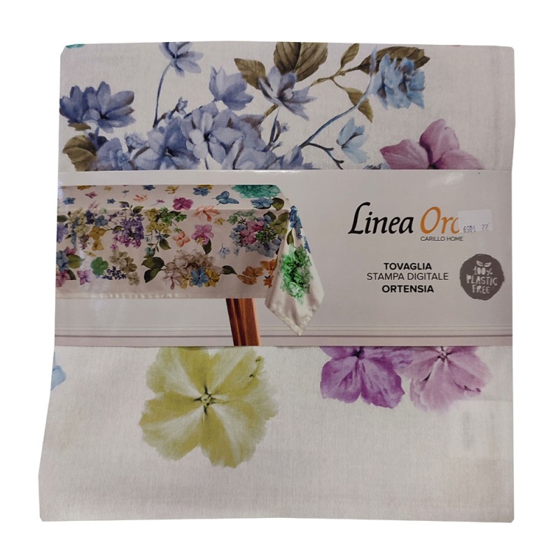 Tovaglia stampa digitale Ortensia da Linea oro, ottima azienda di biancheria per la casa. Tessuto 75% cotone, stampa digitale a alta risoluzione, 2 misure, un prodotto molto bello e di qualità a un ottimo prezzo.