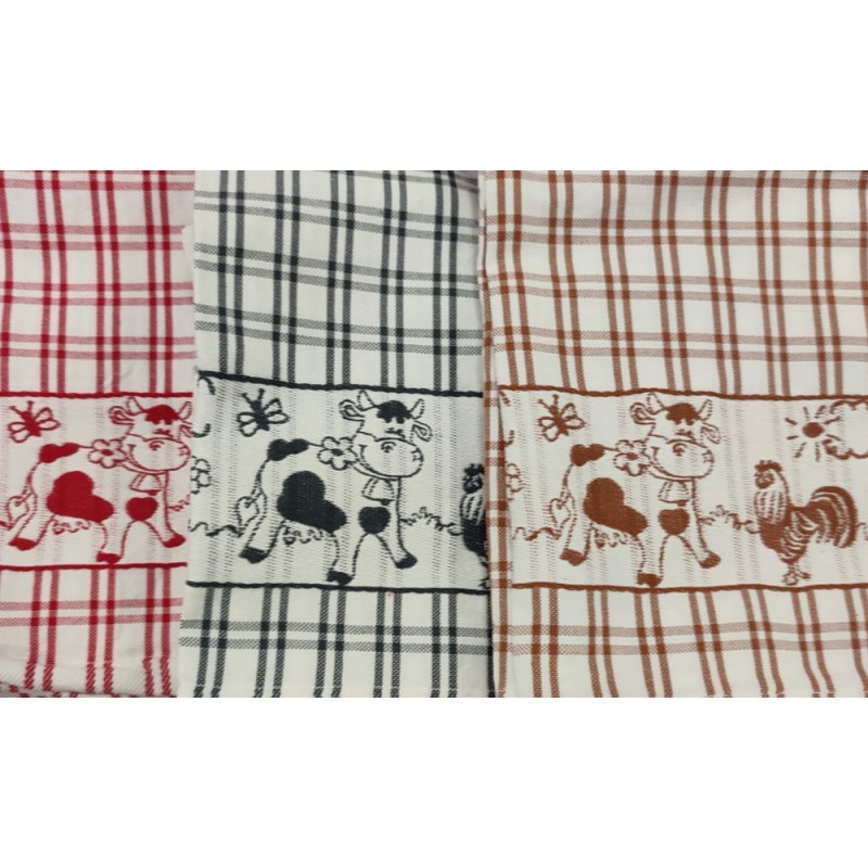 Strofinacci 50x70cm disegno Mister chef mucche da Home sweet home, ottima azienda di biancheria per la casa. Confezione da 3 pezzi 1x colore, tessuto 100% cotone, ottimo rapporto qualità prezzo. Lavabile in lavatrice a 40°.