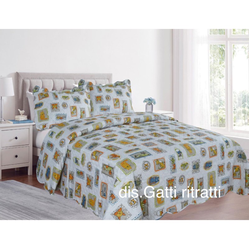 Trapuntino primavera / estate Gatti ritratti da Pezzoli, prodotto di importazione. In microfibra, termosaldato, disponibile nelle misure letto singolo / una piazza, una piazza e mezza e matrimoniale / due piazze. Ottimo prezzo di vendita.