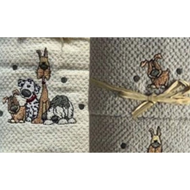 Set spugna pop corn ricamato asciugamano + ospite Cani da Pezzoli, ottima qualità made in Turchia.