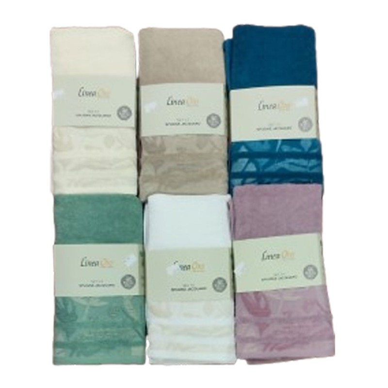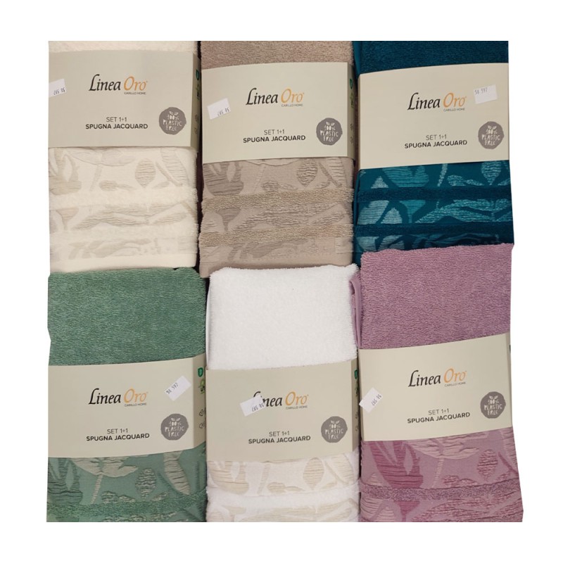 Coppia spugna asciugamano + ospite Cycas da Linea oro, ottima azienda di biancheria per la casa. Spugna morbidissima 100% cotone, lavorazione Jacquard, bellissimo prodotto di qualità e eleganza.