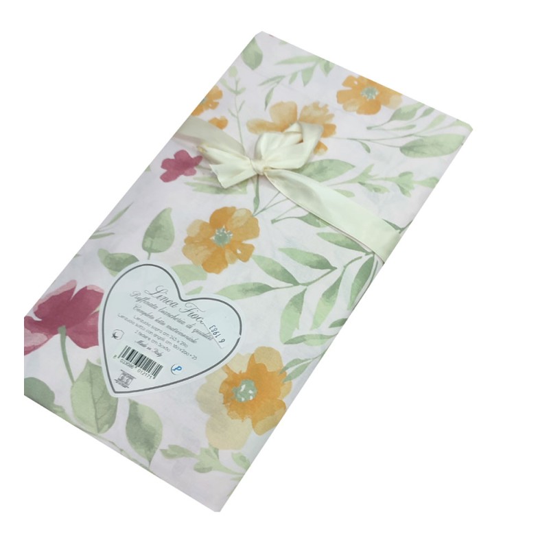 - Completo lenzuola cotone modello Fiori foglie - Linea Fiocco