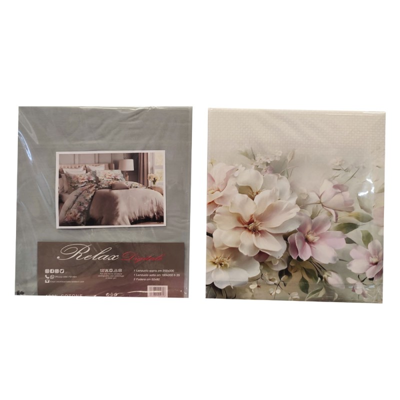 - Completo lenzuola cotone digitale balzato Garden 154 - Linea Relax
