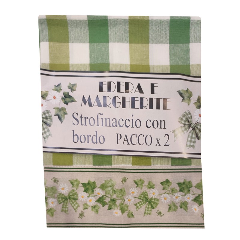 Set cucina disegno Edera e margherite da Pezzoli, ottima azienda di biancheria per la casa. 100% cotone tinto in filo con bordo stampato. Comprende varie tipologie di prodotti per potere proporre una linea completa molto bella per la cucina con ottimi prezzi di vendita.
