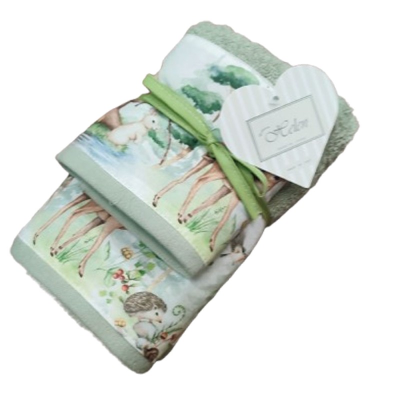 Coppia spugna asciugamano + ospite Bosco da Helen, ottima azienda di biancheria per la casa made in Italy. Spugna morbidissima 100% cotone, stampe digitale nella balza, bellissimo prodotto di qualità e eleganza.