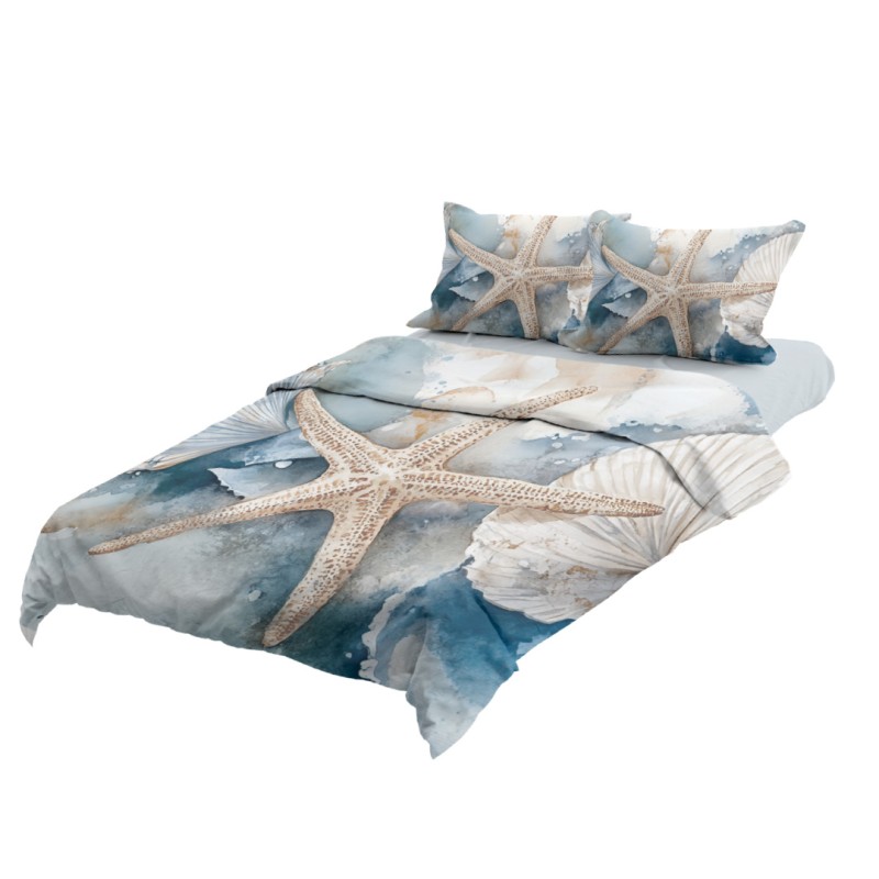Completo lenzuola copriletto matrimoniale disegno Brest da SGhome, ottima azienda di biancheria per la casa. 100% raso di cotone, stampa digitale anche sulla parte posteriore della balza in modo da poterlo usare anche come copriletto nei mesi più caldi, alta qualità.