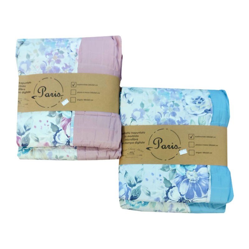 Trapuntino primavera / estate Paris Fiori multicolor da Home sweet home. Letto matrimoniale, esterno e imbottitura in microfibra, bellissima stampa digitale. Ottimo rapporto qualità prezzo.
