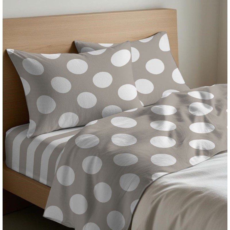 Completo lenzuola 100% cotone disegno Pois da Quadrifoglio-Gipetex, ottima azienda di biancheria per la casa Made in Italy. Disponibile nelle misure letto singolo / una piazza, una piazza e mezza, matrimoniale / due piazze e francese.