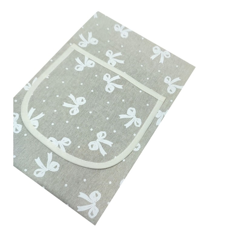 Grembiule pettorina disegno Fiocchetto linea Miros da Pezzoli, ottima azienda di biancheria per la casa made in Italy. Confezione da 2 pezzi, tessuto spesso, molto resistente ai lavaggi e con stampe solide visto la composizione mista poliestere. Chiusura con laccetti. Lavabile in lavatrice a 40°.