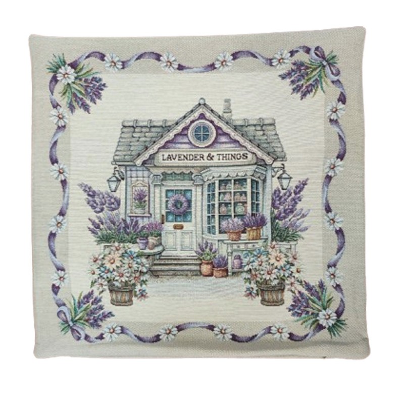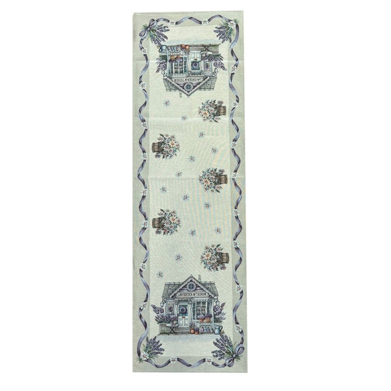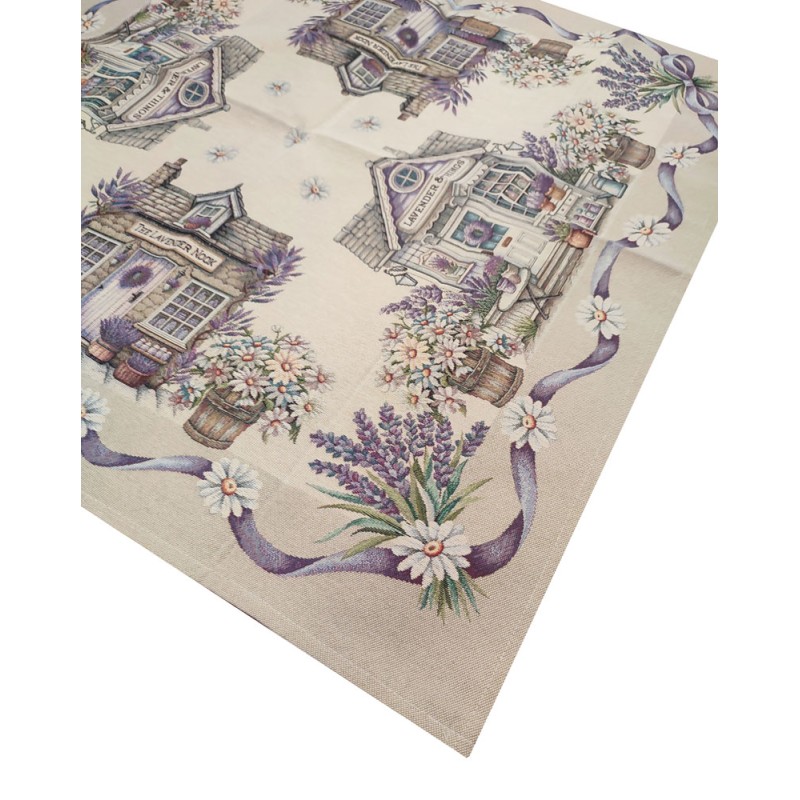 Set Lavanda composto da federa cuscino arredo 45x45cm, runner e centro, tessuto Gobelin da Pezzoli, made in Italy. Ottimi prodotti di qualità.