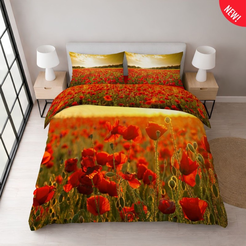 Lenzuola copriletto disegno Papaveri da Quadrifoglio-Gipetex, ottima azienda di biancheria per la casa Made in Italy. 100% cotone, stampe digitali a alta risoluzione, composto dal lenzuolo e due federe cuscino. La stampa è anche sulla balza del lenzuolo abbinata alle federe in modo da poterlo usare come copriletto nei mesi estivi più caldi.