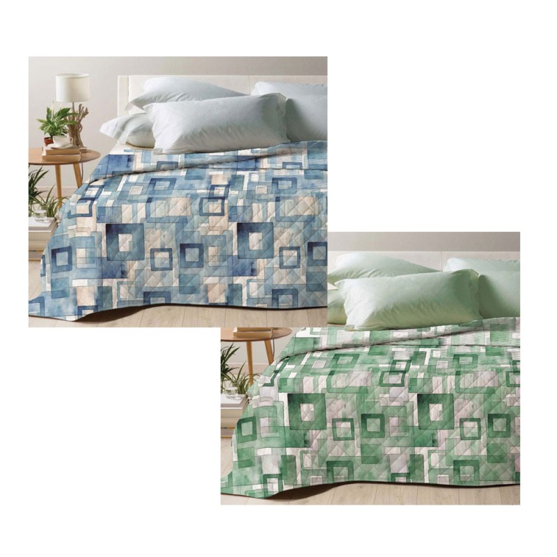 2 colori, letto matrimoniale, tessuto esterno 80% Cotone 20% Poliestere, stampa digitale, imbottitura Poliestere 100 gr/mq, prodotto di qualità