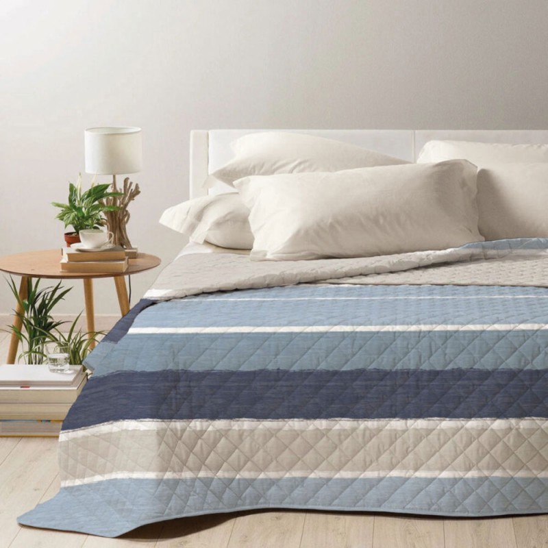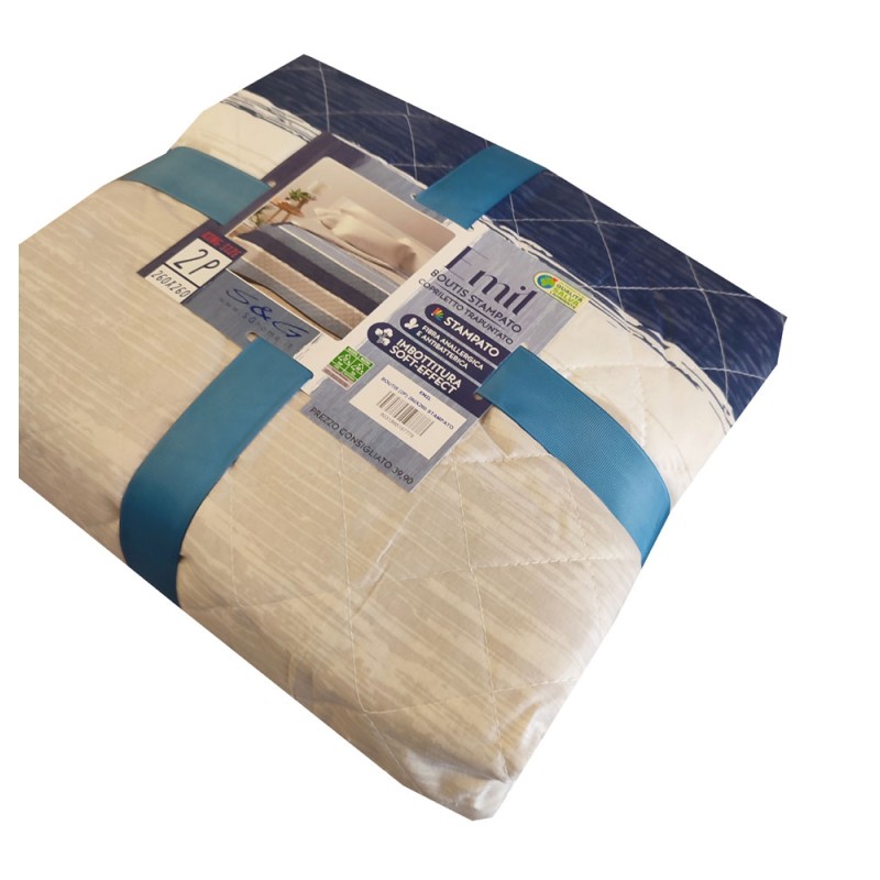 Trapuntino Emil da SGhome. Tessuto esterno stampato misto cotone, imbottitura soft-effect in poliestere anallergico e antibatterico 80 gr/mq. Per letto matrimoniale. Qualità a un ottimo prezzo.