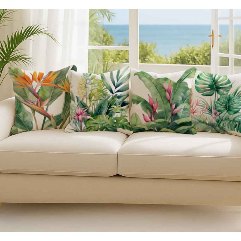Assortito 4 pezzi 1x disegno, 45 x 45 cm, 100% cotone, chiusura con zip, stampa digitale, da Sghome