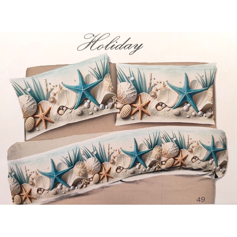 Completo lenzuola 100% cotone disegno Holiday 49 da Manifattura Imberti, ottima azienda di biancheria per la casa Made in Italy. Stampe digitali a alta risoluzione anche sul lenzuolo sopra cordonetto, un prodotto di alta qualità. Disponibile nella misura letto matrimoniale / due piazze.