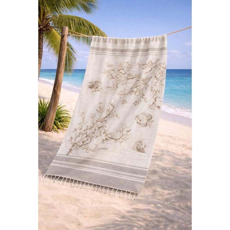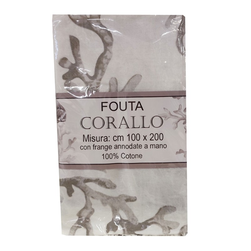 Telo mare pareo disegno Corallo da Pezzoli, ottima azienda di biancheria per la casa. Misura 100 x 200 cm, 100% cotone fouta con frange annodate a mano. La Fouta è fabbricata ancora oggi artigianalmente attraverso l'accurato metodo di tessitura tradizionale. Bel prodotto di importazione con un ottimo rapporto qualità prezzo.