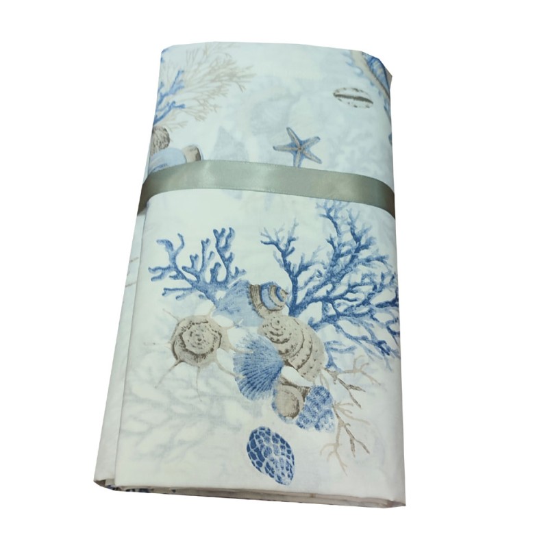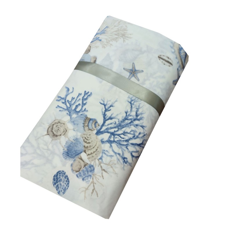 Completo lenzuola 100% cotone disegno Mare linea Fiocco da Pezzoli, ottima azienda di biancheria per la casa Made in Italy. Tessuto morbidissimo, disponibile nella misura letto matrimoniale / due piazze.