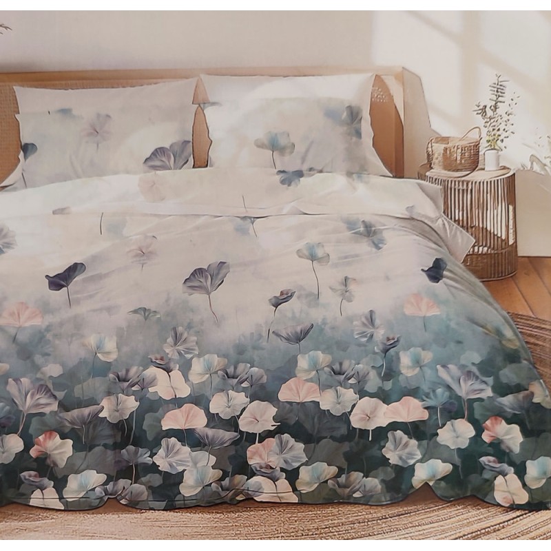 Lenzuolo copriletto 100% percalle puro cotone, stampa digitale a alta risoluzione anche nella balza, con lenzuolo sotto e due federe, altissima qualità italiana da Tessitura di Arconate