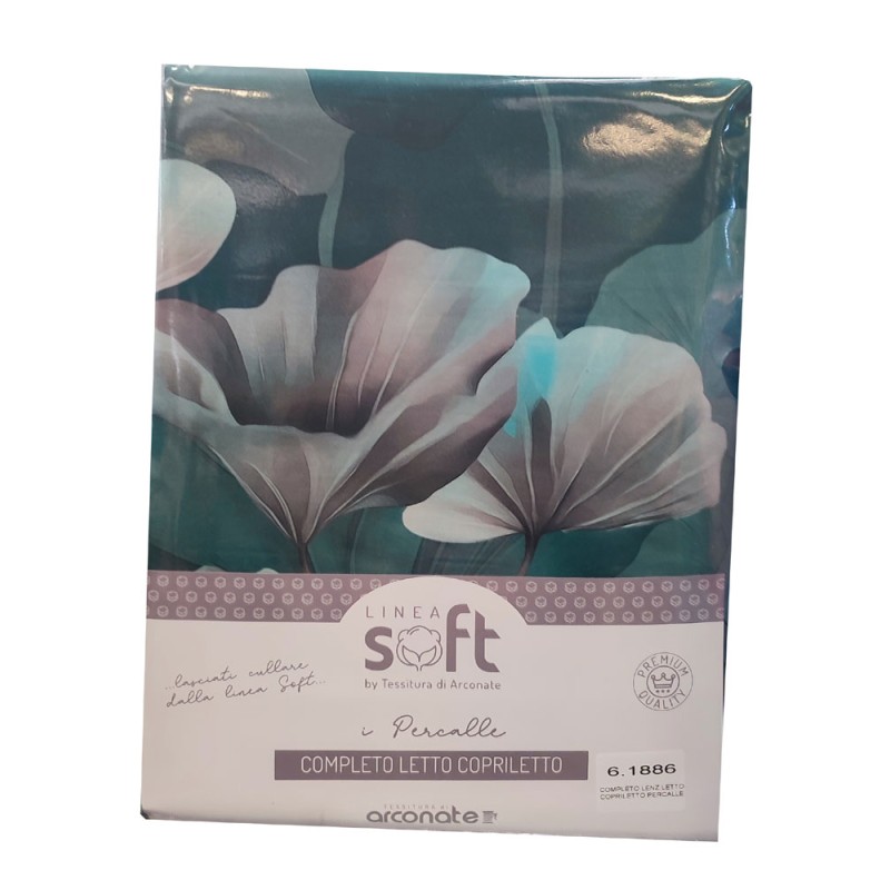 COMPLETO LENZUOLO COPRILETTO MATRIMONIALE DIGITALE PERCALLE GINKGO TA102 TAA ARCONATE