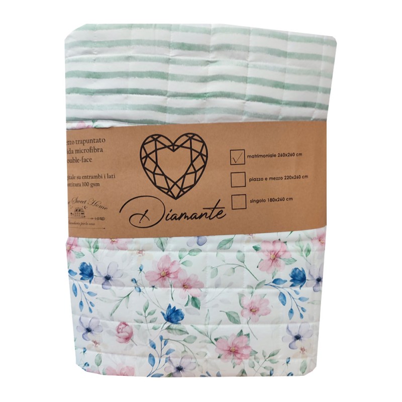 TRAPUNTINO MICROFIBRA DOUBLE FACE DIGITALE DIAMANTE FIORELLINI RIGHE HOME SWEET HOME