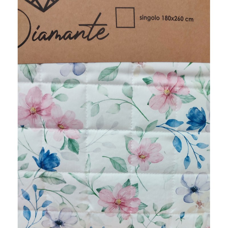 Trapuntino primavera / estate Diamante Fiorellini righe da Home sweet home. Letto singolo, una piazza e mezza e matrimoniale, esterno e imbottitura in microfibra, bellissima stampa digitale. Ottimo rapporto qualità prezzo.