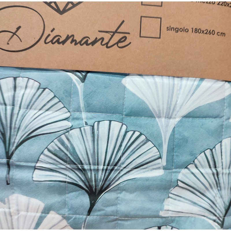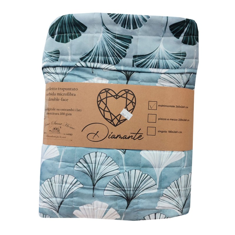Trapuntino primavera / estate Diamante Ginkgo da Home sweet home. Letto singolo, una piazza e mezza e matrimoniale, esterno e imbottitura in microfibra, bellissima stampa digitale. Ottimo rapporto qualità prezzo.